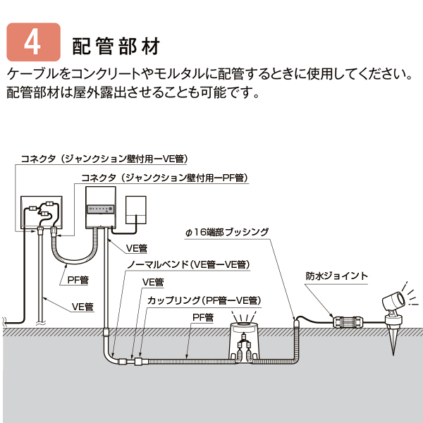 ガーデンライト LIXIL 12V ガーデンライト オプション 配管部材 16mmコネクタJCT壁付VE管 KSKの通販は環境生活