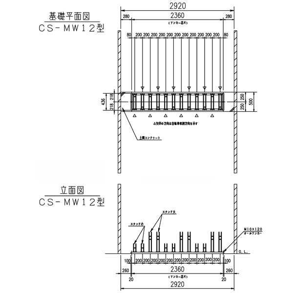 自転車スタンド ダイケン サイクルスタンド CS-MW12(スタンドピッチ400mm) 収容台数12台 個人宅配送不可の通販は環境生活