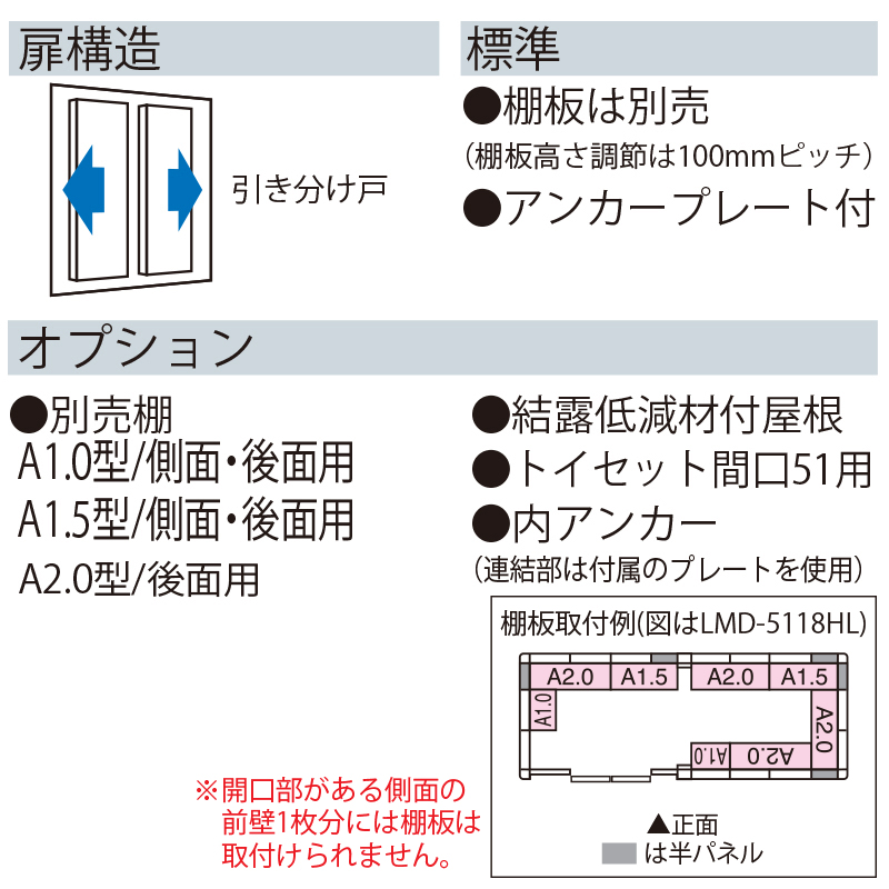 ・LMD…一般型 ・LMDS…積雪型 ・LMDU…豪雪タイプ ・末尾H…背高タイプ
