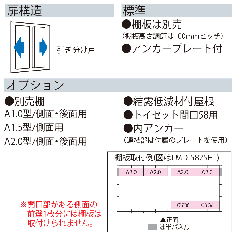 ・LMD…一般型 ・LMDS…積雪型 ・LMDU…豪雪タイプ ・末尾H…背高タイプ