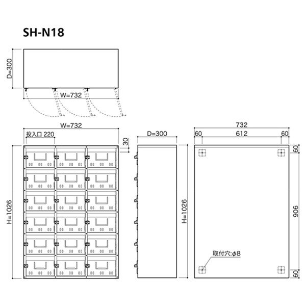 5戸タイプ以上 コーワソニア 集合郵便受箱 前入前出 南京錠対応型 SH-N18(3列6段)の通販は環境生活