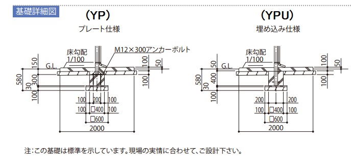 基礎施工図および補足説明書をよくご確認の上、お選びいただきますようお願い致します。
