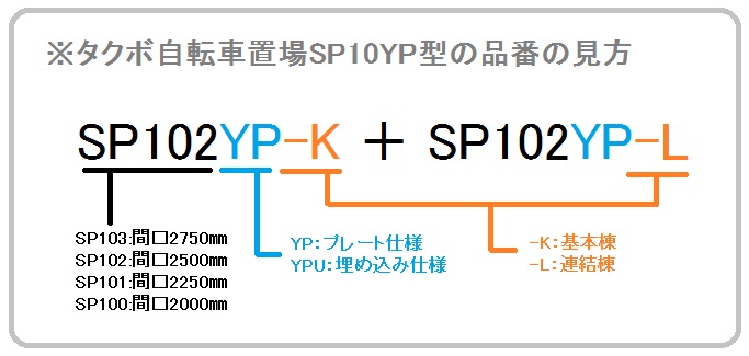タクボ自転車置場SP10YP型には、「プレート仕様」と「柱埋め込み仕様」があります。