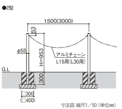 固定式(ピラー型) YKKAP チェーンポール2型本体 中柱T-100 固定式 KSKの通販は環境生活
