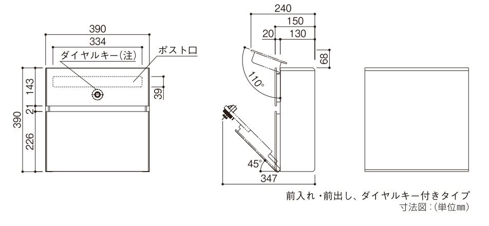 シンプル&モダン 郵便ポスト YKKAP ポスト T10型 前入前出し ダイヤルキー付き 全2色 KSKの通販は環境生活