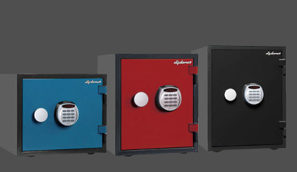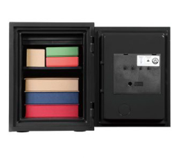 機能とデザイン性を追求した耐火金庫。耐火性能に加え、火災時のスプリンクラーによる散水や消火放水から守る耐水性能も標準装備。
