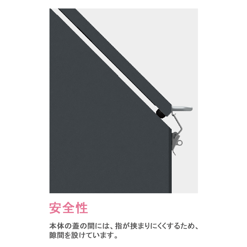 本体の蓋の間には、指が挟まりにくくするため、隙間を設けています。