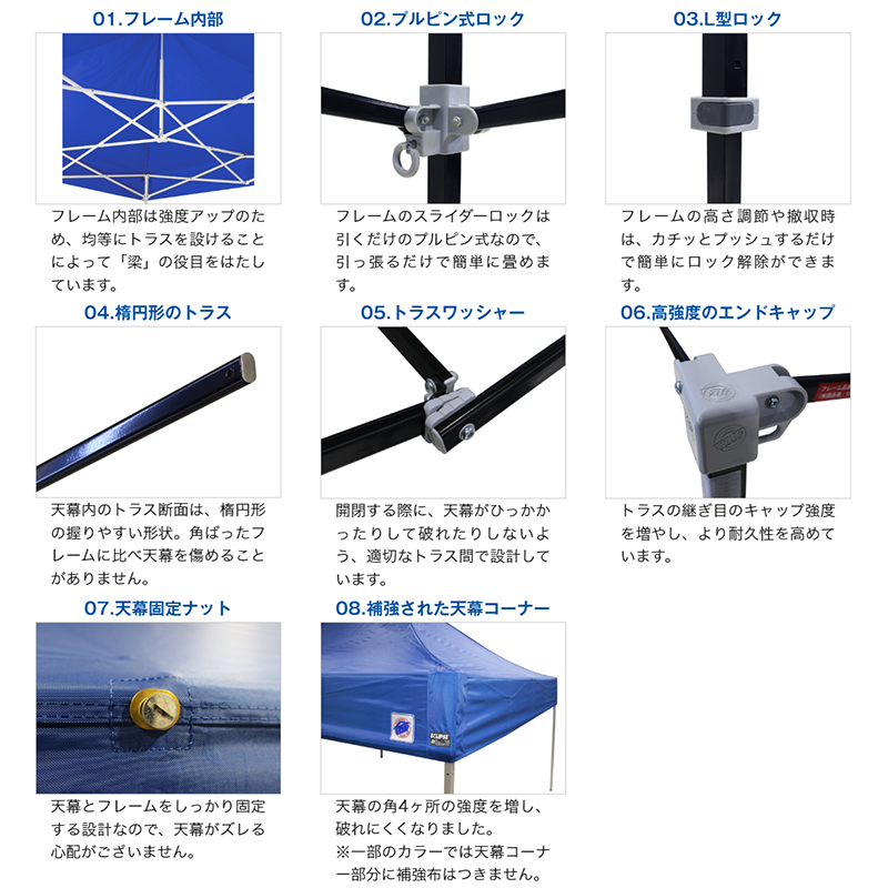 ●間口は広く奥行は浅いユニークなゆったりサイズは、野外店舗やブース割りイベントなどにぴったり。