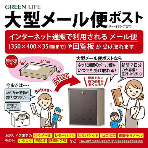 スタンダード 郵便ポスト グリーンライフ 大型メール便ポスト FH-75D-TGY-GB チタングレー/グレイッシュブラウン 送料無料の通販は環境生活