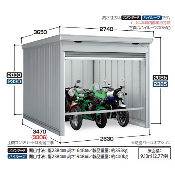 イナバ バイク保管庫 [製品5年保証]イナバ物置 バイクガレージ バイク保管庫 FM-2635HD 土間タイプ 一般型 ハイルーフ クールシルバー色の通販は環境生活