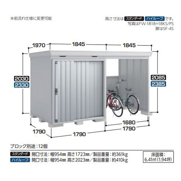 中・大型物置 イナバ物置 フォルタウィズ FW-1818+18KH 右側開放スペース ハイルーフ 多雪型 チャコールグレー[製品5年保証]の通販は環境生活