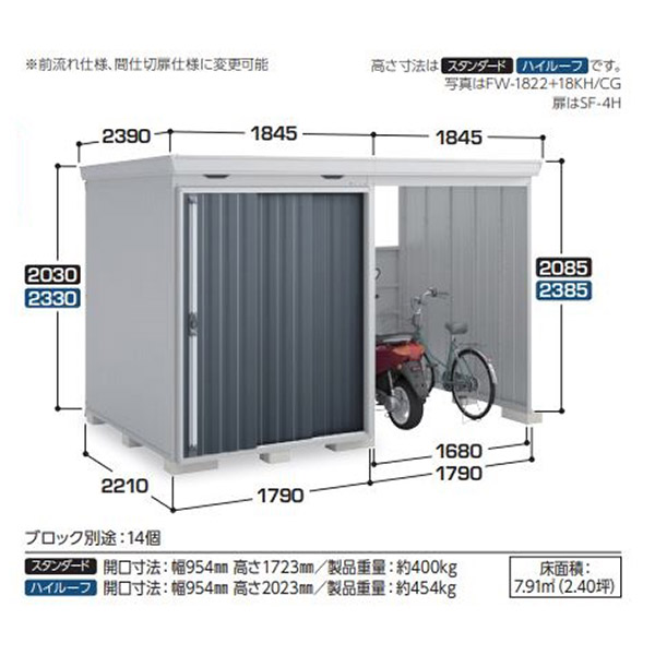 中・大型物置 イナバ物置 フォルタウィズ FW-18K+1822H 左側開放スペース ハイルーフ 多雪型 チャコールグレー[製品5年保証]の通販は環境生活