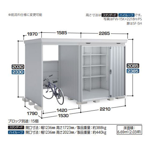 中・大型物置 イナバ物置 フォルタウィズ FW-2218+15KH 右側開放スペース ハイルーフ 一般型 プラチナシルバー[製品5年保証]の通販は環境生活