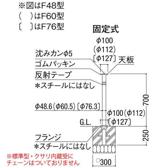 固定式(ピラー型) 駐車場ポールLIXIL スペースガード(ステンレス) F76型 固定式 標準型 LNF56 KSKの通販は環境生活