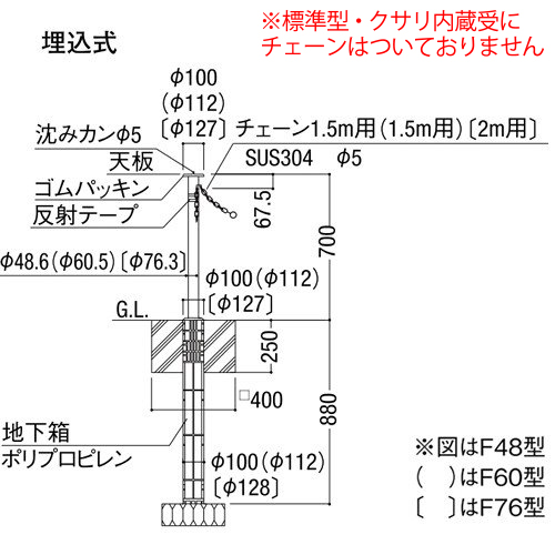 上下式(専用固定式あり) 駐車場ポールLIXIL スペースガード(ステンレス) F60型 埋込式(キー付き) 標準型 LNF21 KSKの通販は環境生活