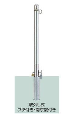 固定式(ピラー型) 駐車場ポールLIXIL スペースガード(ステンレス) R60型 取外し式 フタ付き・南京錠付き 片フック LNK29 KSKの通販は環境生活