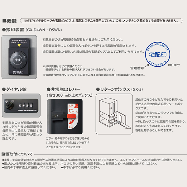 マンション用宅配ボックス 田島メタルワーク 集合住宅用 宅配ボックスGX-D2WF 捺印装置なし スチールの通販は環境生活