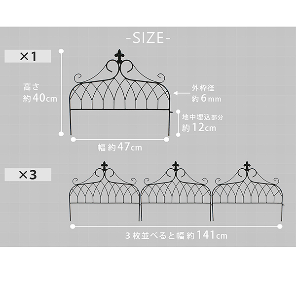ガーデン・水まわり 住まいスタイル アイアンフェンス ミニタイプdrape(ドレープ) 3枚組 ブラックの通販は環境生活