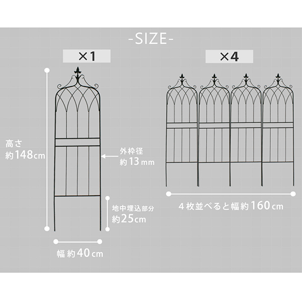 ガーデン・水まわり 住まいスタイル アイアンフェンス148 ロータイプdrape(ドレープ) 4枚組 ホワイトの通販は環境生活