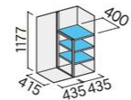 ※青色の棚は標準装備の棚板です。赤色・黄色等の棚板は別売りオプション品です。