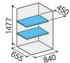※青色の棚は標準装備の棚板です。赤色・黄色等の棚板は別売りオプション品です。