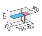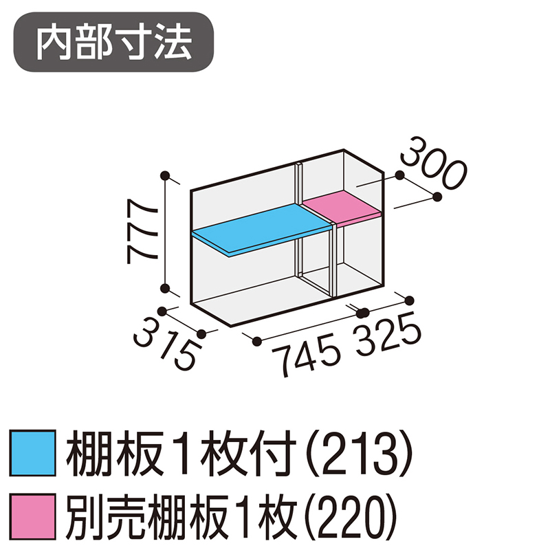 ※青色の棚は標準装備の棚板です。赤色・黄色等の棚板は別売りオプション品です。