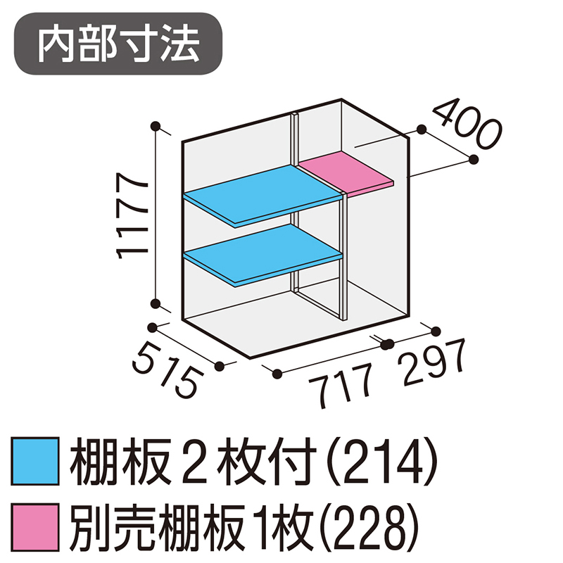 ※青色の棚は標準装備の棚板です。赤色・黄色等の棚板は別売りオプション品です。