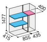 ※青色の棚は標準装備の棚板です。赤色・黄色等の棚板は別売りオプション品です。