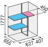 ※青色の棚は標準装備の棚板です。赤色・黄色等の棚板は別売りオプション品です。