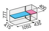 ※青色の棚は標準装備の棚板です。赤色・黄色等の棚板は別売りオプション品です。