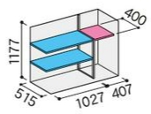 ※青色の棚は標準装備の棚板です。赤色・黄色等の棚板は別売りオプション品です。