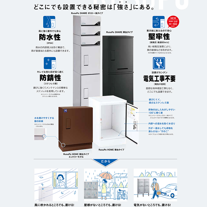 戸建用宅配ボックス 河村電器産業 マンション・アパート向け宅配ボックス KD2-50PW ルスポ シェア ホワイト ポールタイプ 防水 大容量 集合住宅 ハイツの通販は環境生活