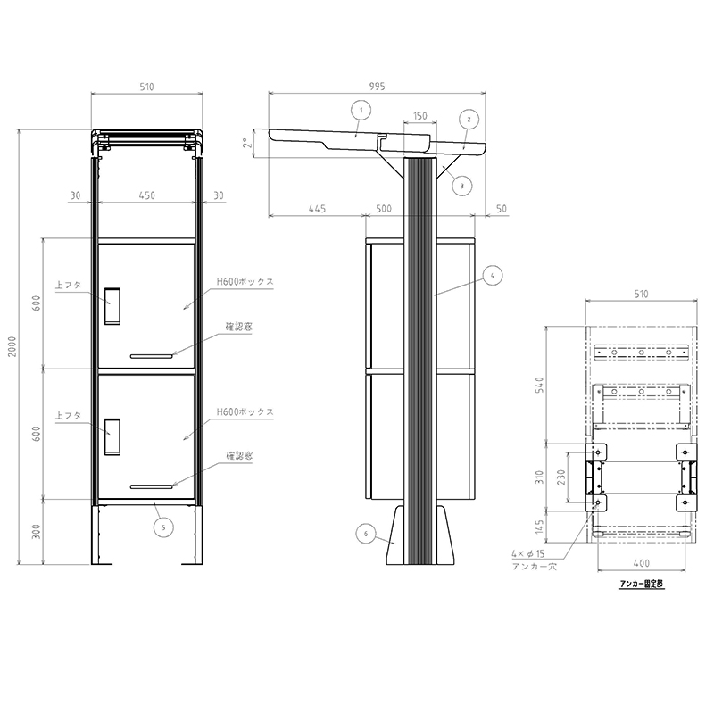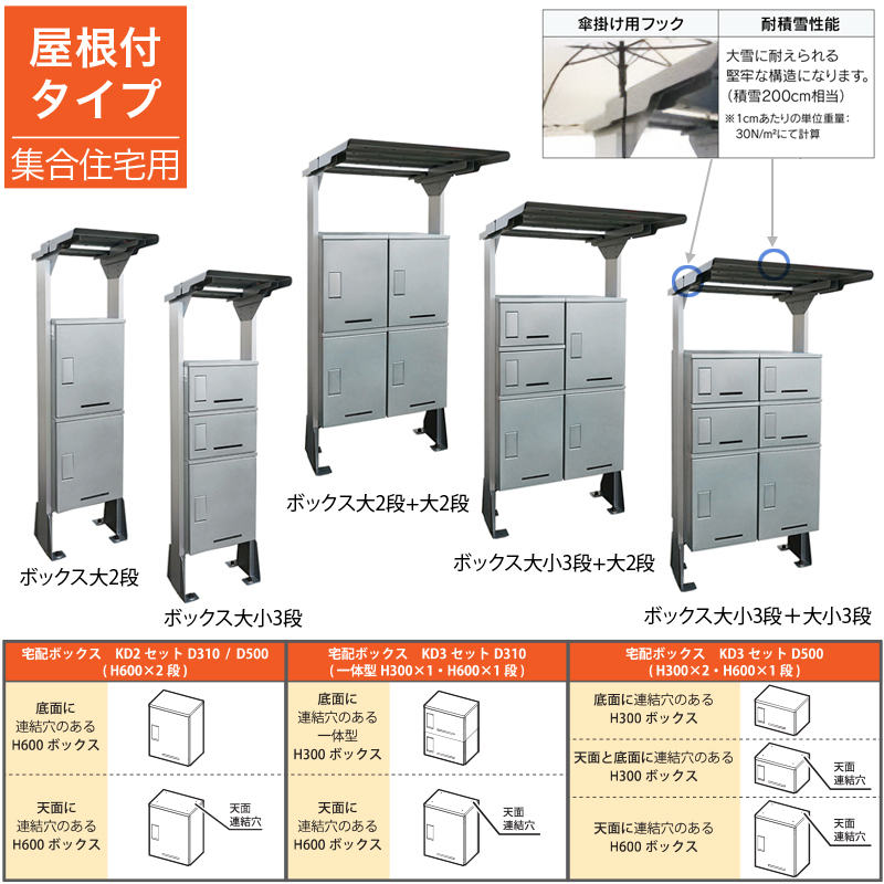 戸建用宅配ボックス 河村電器産業 マンション・アパート向け宅配ボックス KD2-50YS ルスポ シェア シルバー 屋根付きタイプ 防水 大容量 集合住宅 ハイツの通販は環境生活