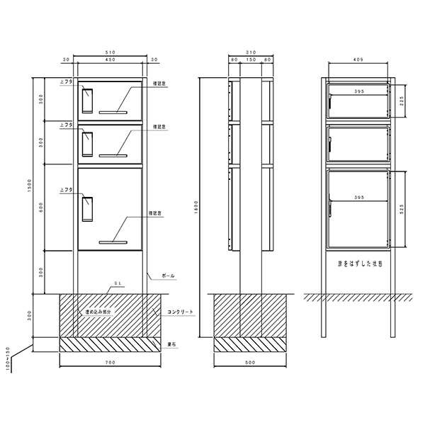 戸建用宅配ボックス 河村電器産業 マンション・アパート向け宅配ボックス KD3-31PS ルスポ シェア シルバー ポールタイプ 防水 大容量 集合住宅 ハイツの通販は環境生活