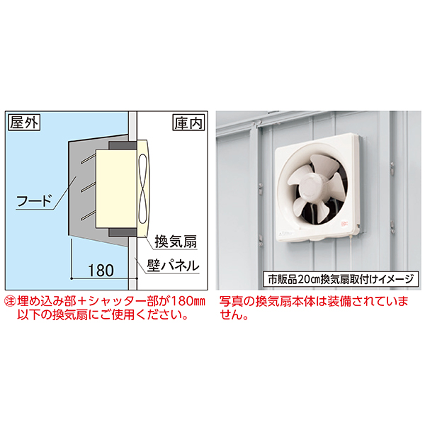 組立費・オプション イナバガレージ専用オプション フード付20cm換気扇取付用パネル KNK-FHの通販は環境生活