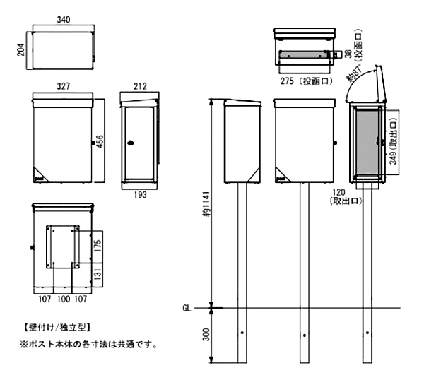 ■サイズ:W340×H456×D204 投稿口W38×H275 ■重量:約5.7kg ■構造部材:ステンレス/ZAM®(高耐食溶融メッキ鋼板) ■生産国:日本 ※上入れ・横出し ※大型配達物対応340mm×260mm×30mmまでの捺印不要の大型配達物が入ります。 ※取出扉の開閉方向は固定です。 ※右勝手の場合は右開き、左勝手の場合は左開きとなります。 ※現場での左右の付け替えはできません。 ※壁付けタイプをご購入の際は、必ずオプションの壁面取付板をご使用ください。取付方法:取付板+プラグ+ビス留め