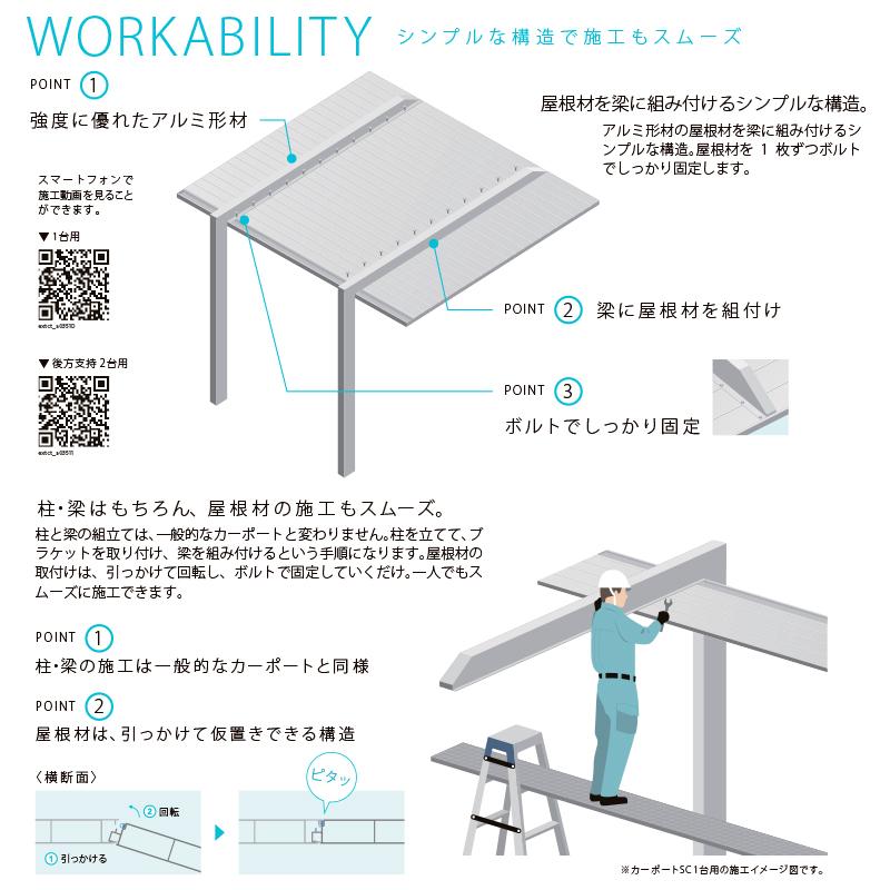 車庫・駐輪 【エリア限定】 LIXIL カーポートSC 2台用48-57型 基本タイプ 標準柱 アルミ色の通販は環境生活