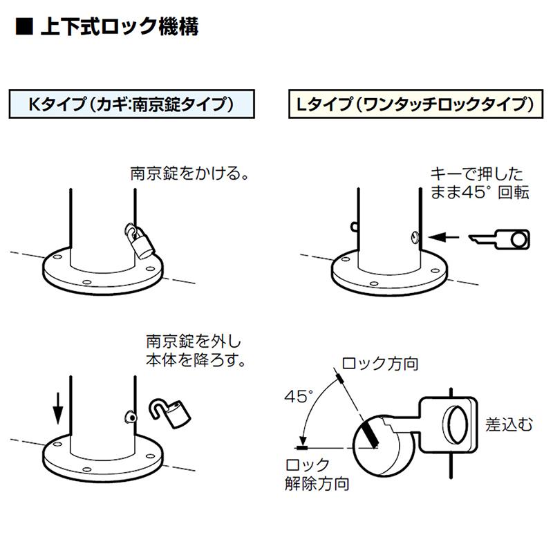 上下式(専用固定式あり) サンポール リフター 交換用本体 φ76.3 上下式 バリアフリータイプ ワンタッチロック別途 LA-8LC-E-BF 車止め 駐車場 ポールの通販は環境生活