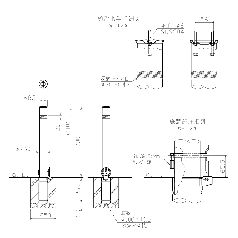 差込式 サンポール リフター Φ76.3 差込式カギ付 LA-8SK 車止め 駐車場 ポール ステンレスの通販は環境生活