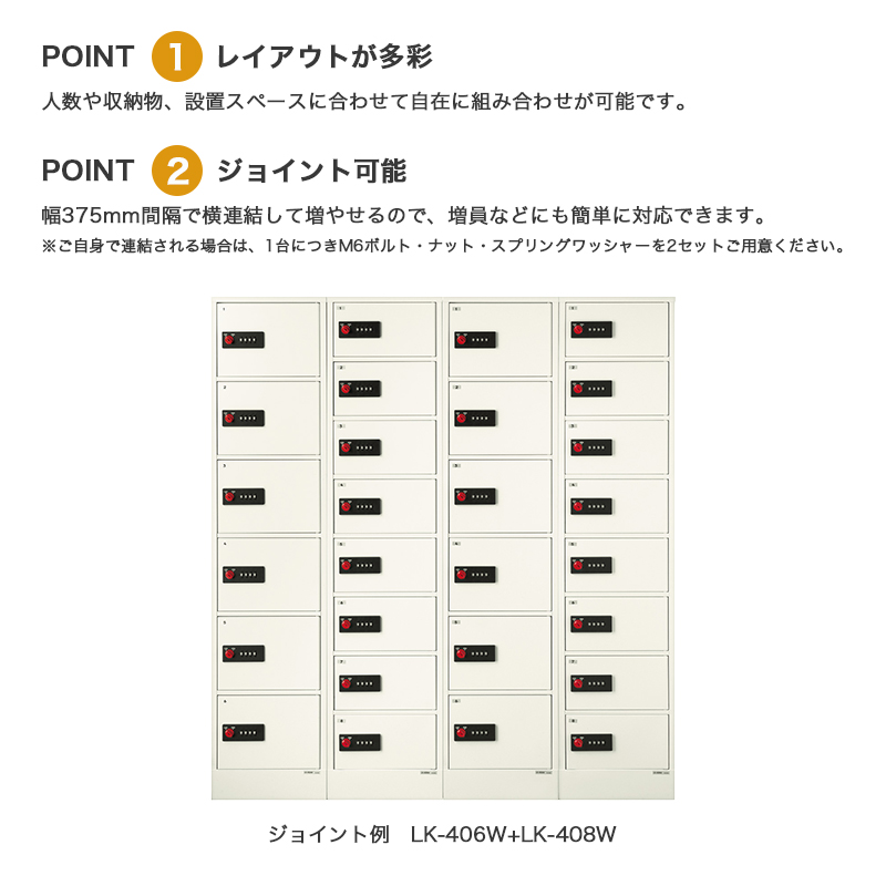 金庫 貴重品ロッカー エーコー リゼロ・ロック式 1列6段 6人用 LK-406W パーソナル 保管庫 軒先渡しの通販は環境生活