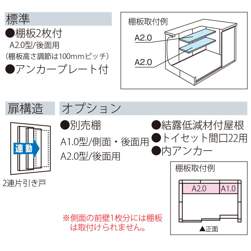 ・棚板 2枚付き(a2.0型/後面用)・アンカープレート付き