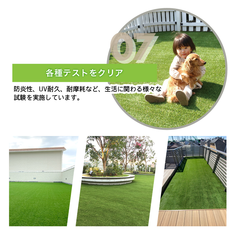打ち水をした際に人工芝の表面温度を低くさせる効果があり、夏場の高温になりがちな人工芝の表面温度を低下させます。