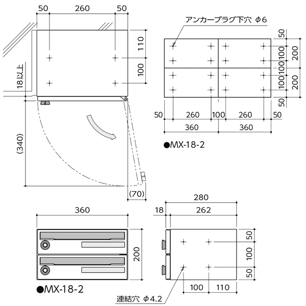 2戸タイプ 田島メタルワーク 集合住宅用郵便ポスト MX-18-2 2戸用 myナンバー錠の通販は環境生活