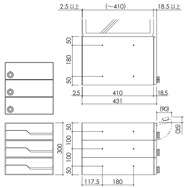 TOP > 郵便ポスト・郵便受け > 集合住宅用ポスト > 3戸タイプ