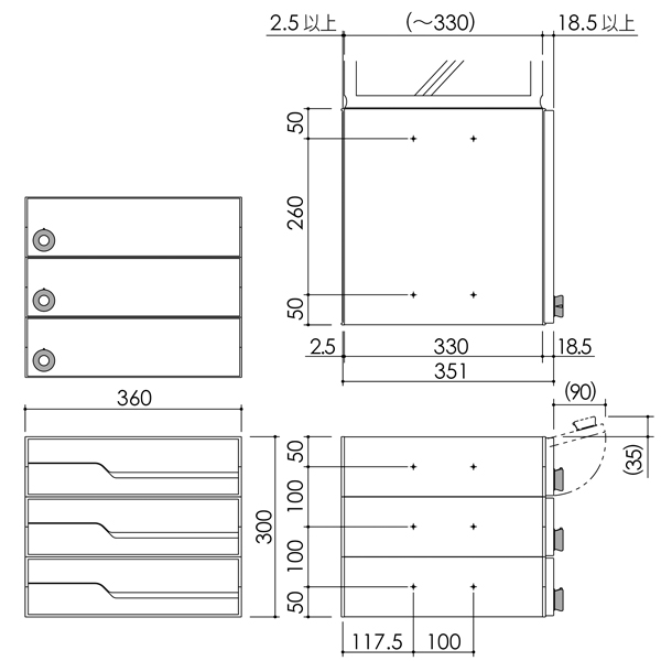 TOP > 郵便ポスト・郵便受け > 集合住宅用ポスト > 3戸タイプ