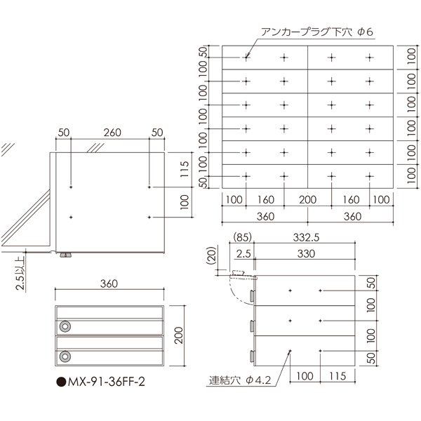 2戸タイプ 田島メタルワーク 集合住宅用郵便ポスト MX-91-36FF-2-B 2戸用 myナンバー錠 ブラックの通販は環境生活