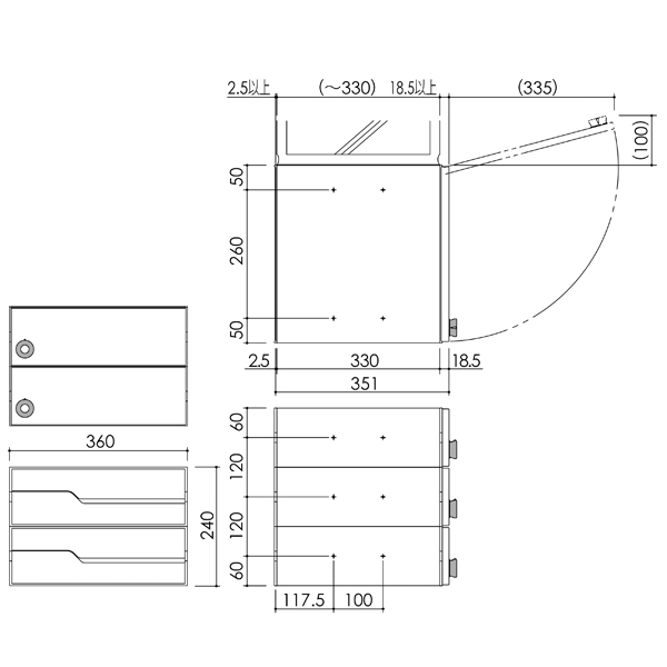2戸タイプ 田島メタルワーク 集合住宅用郵便ポスト MX-92-36FBY-2-W 2戸用 myナンバー錠 ホワイトの通販は環境生活