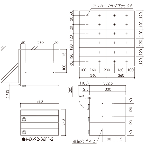 2戸タイプ 田島メタルワーク 集合住宅用郵便ポスト MX-92-36FF-2-HL 2戸用 myナンバー錠 ヘアラインの通販は環境生活