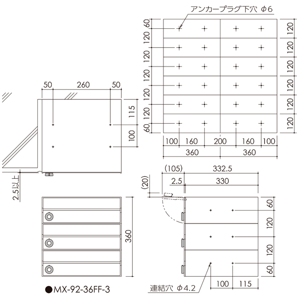 3戸タイプ 田島メタルワーク 集合住宅用郵便ポスト MX-92-36FF-3-HL 3戸用 myナンバー錠 ヘアラインの通販は環境生活