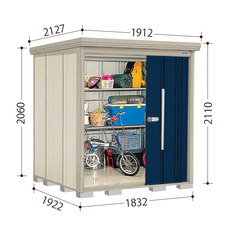 タクボ物置 ND 【転倒防止工事無料キャンペーン中!※組立注文対象】【標準組立費込み】【一般型 標準屋根 側面棚タイプ】タクボ物置 Mr.ストックマン ダンディ ND-1819Y 幅1912×奥行2127×高さ2110mmの通販は環境生活